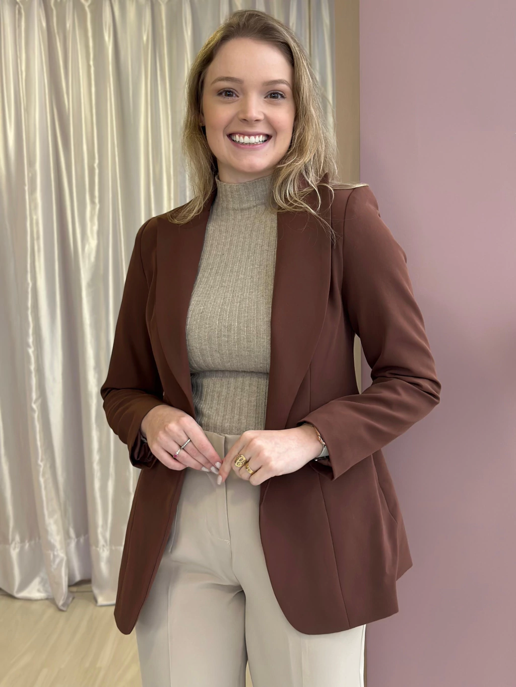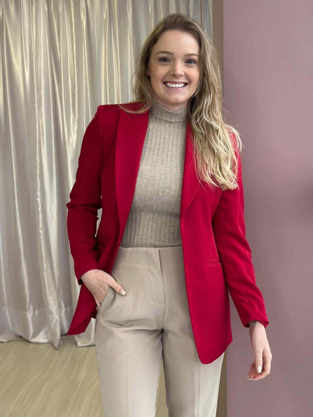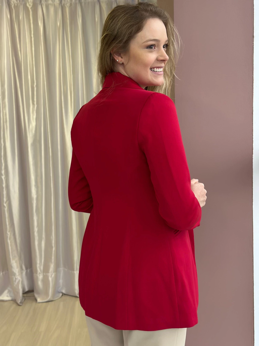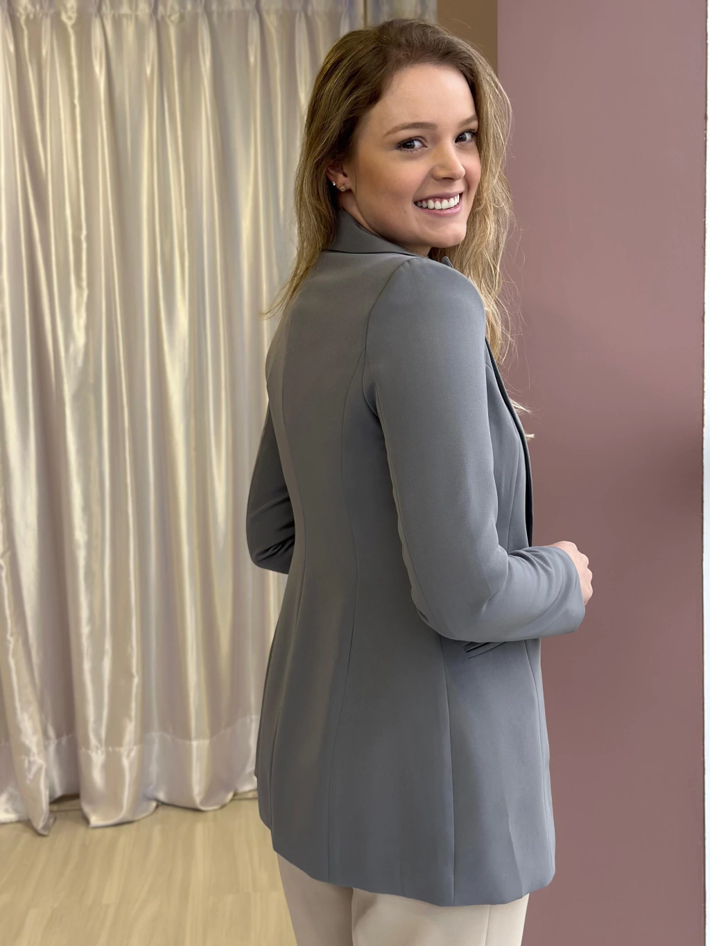 Este blazer de alfaiataria é um modelo alongado e a sua modelagem, com perfeitas e intencionais costuras nas costas, delimitam a silhueta, o tornando super acinturado. A lapela e as ombreiras trazem estrutura à peça, enquanto os bolsos decorativos na parte da frente mantém o visual limpo e elegante. O blazer é totalmente forrado para um caimento suave e confortável, garantindo também durabilidade.